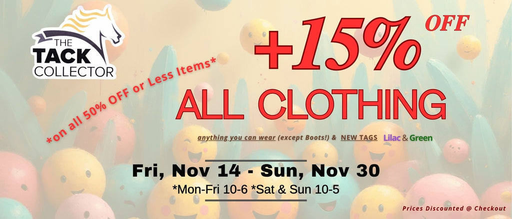 At The Tack Collector, our goal is to provide an economical and environmentally friendly way to keep your love for horses affordable and sustainable. Our inventory is 100% consignment, with thousands of one-of-a-kind items to fuel your own collection. Whether you’re just getting started, going to your first (or 100th!) show, or riding in the top level of your discipline, we probably have what you’re looking for without breaking the bank.