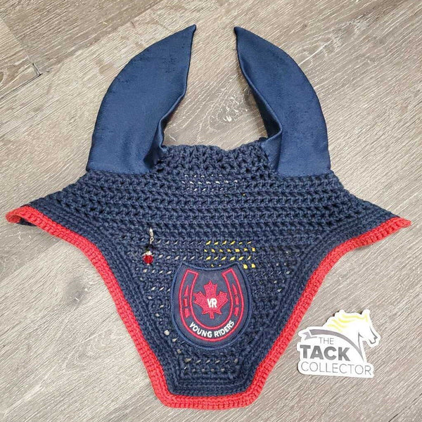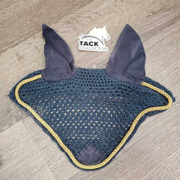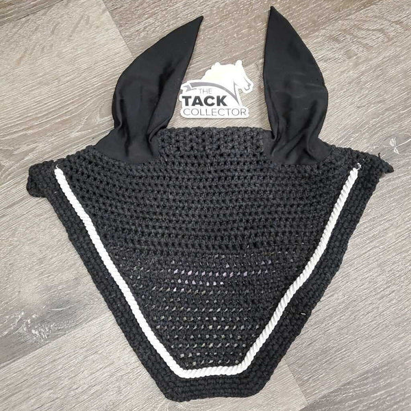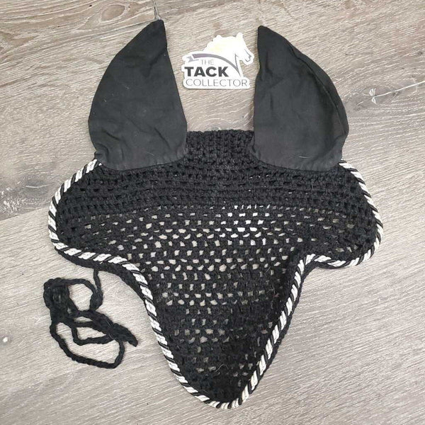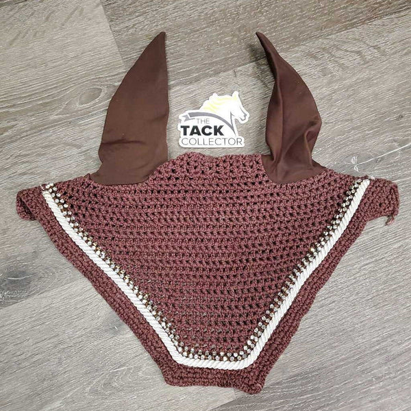 Crochet Fly Veil Ear Bonnet, Piping, Cotton Ears *xc/like new, clean, older? Equestrian Stockholm Size: F *H $52.50