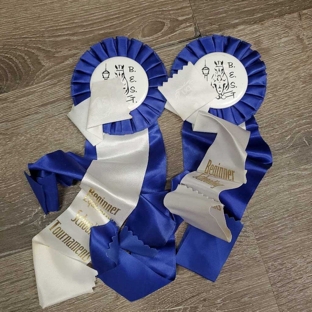 5 Show Ribbons *gc, crinkled, bent, mnr dirt, older, stains, threads