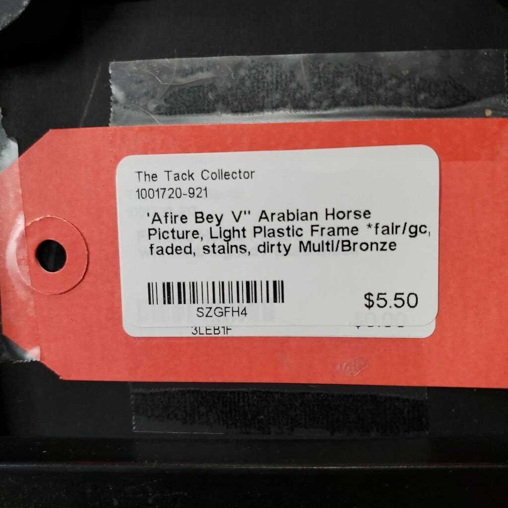 'Afire Bey V" Arabian Horse Picture, Light Plastic Frame *fair/gc, faded, stains, dirty
