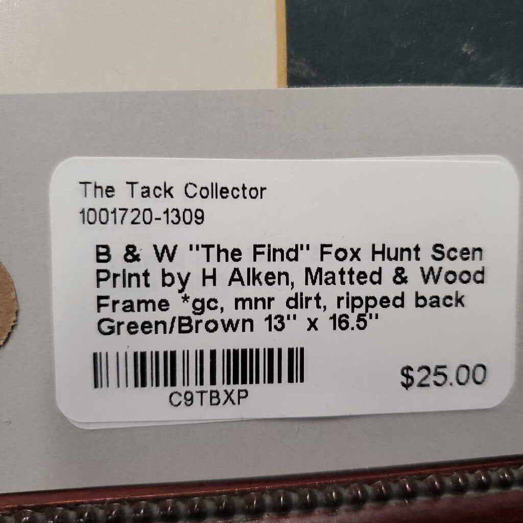 B & W "The Find" Fox Hunt Scen Print by H Alken, Matted & Wood Frame *gc, mnr dirt, ripped back