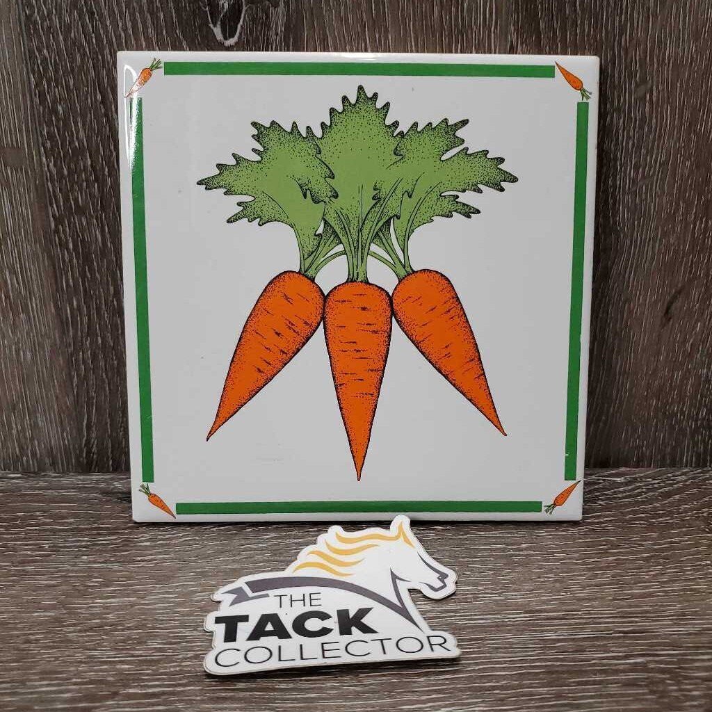 Ceramic Carrots Tile & Cork Bottom Coaster *gc, clean, chipped cork edges, older