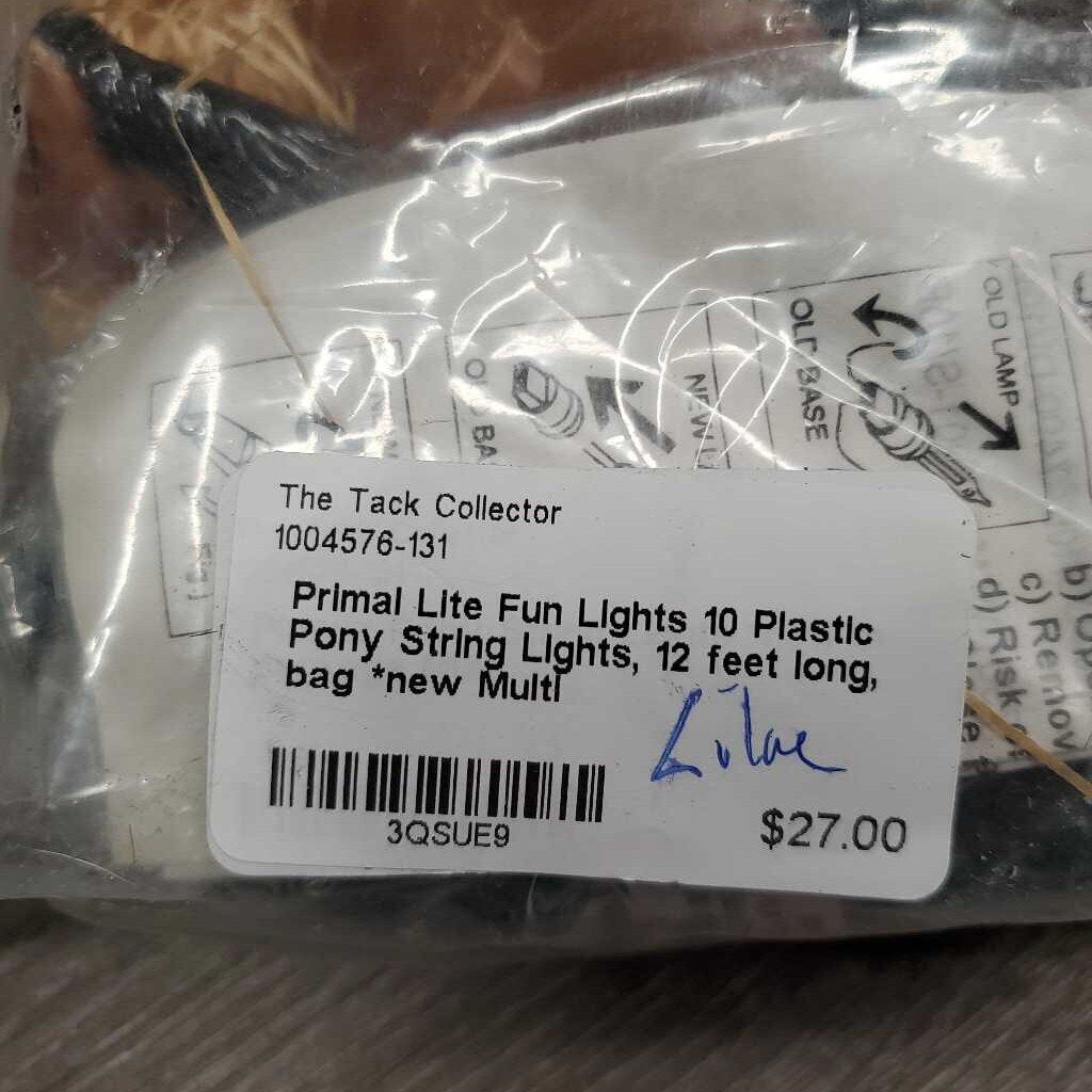Primal Lite Fun Lights 10 Plastic Pony String Lights, 12 feet long, bag *new
