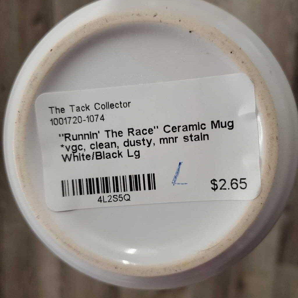 "Runnin' The Race" Ceramic Mug *vgc, clean, dusty, mnr stain