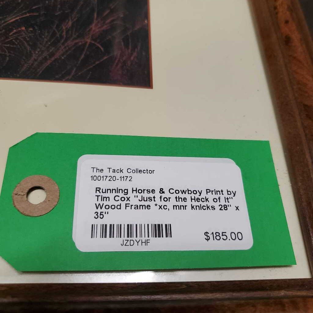 Running Horse & Cowboy Print by Tim Cox "Just for the Heck of It" Wood Frame *xc, mnr knicks
