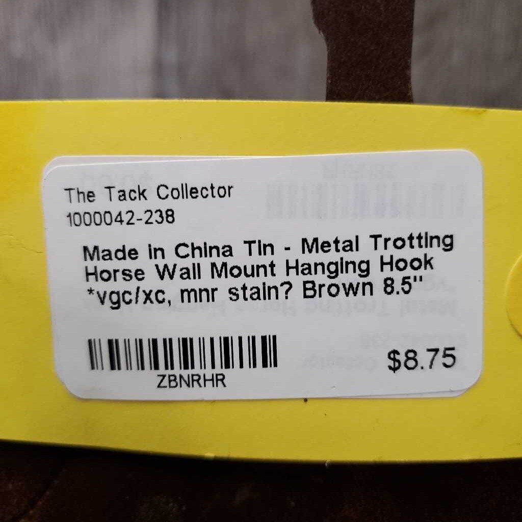 Tin - Metal Trotting Horse Wall Mount Hanging Hook *vgc/xc, mnr stain?