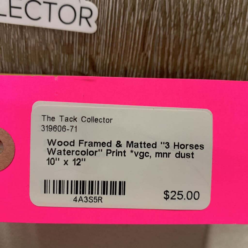 Wood Framed & Matted "3 Horses Watercolor" Print *vgc, mnr dust