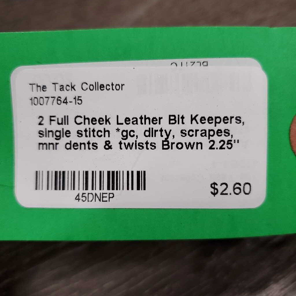 2 Full Cheek Leather Bit Keepers, single stitch *gc, dirty, scrapes, mnr dents & twists