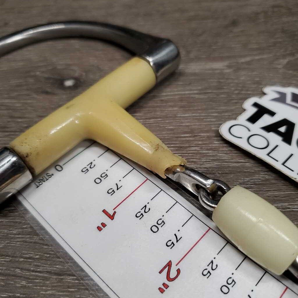 French Link Hunter D Ring, center roller *gc/fair, split end, chewed, discolored, clean, residue, scratches, older
