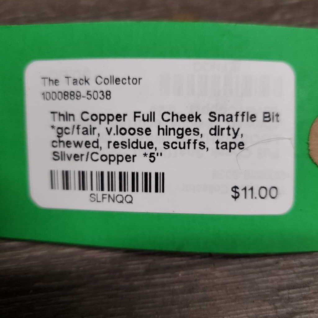 Thin Copper Full Cheek Snaffle Bit *gc/fair, v.loose hinges, dirty, chewed, residue, scuffs, tape