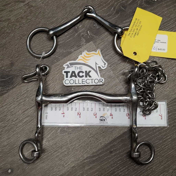 Med Port Weymouth, 5" thin Bradoon, Chain *vgc, clean, residue, stains Size: 5.25" & 5"