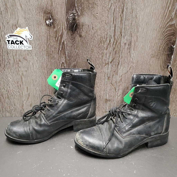 Paddock Boots, hvy laces *gc/fair, faded, dirty, rubs, v.scraped toes, older Ariat Heritage Size: 6B $70.00