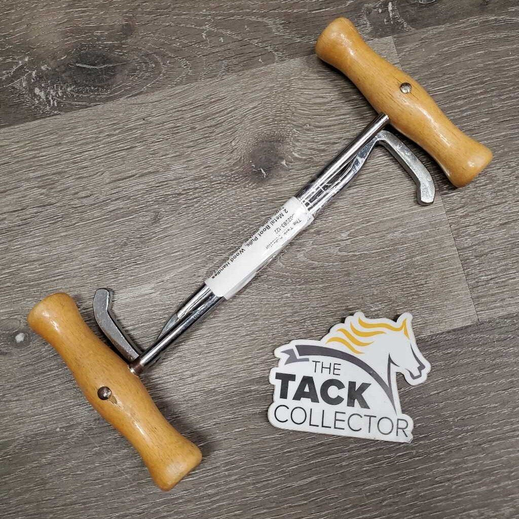 2 Metal Boot Pulls, Wood Handles *vgc, rubs, marker, chips