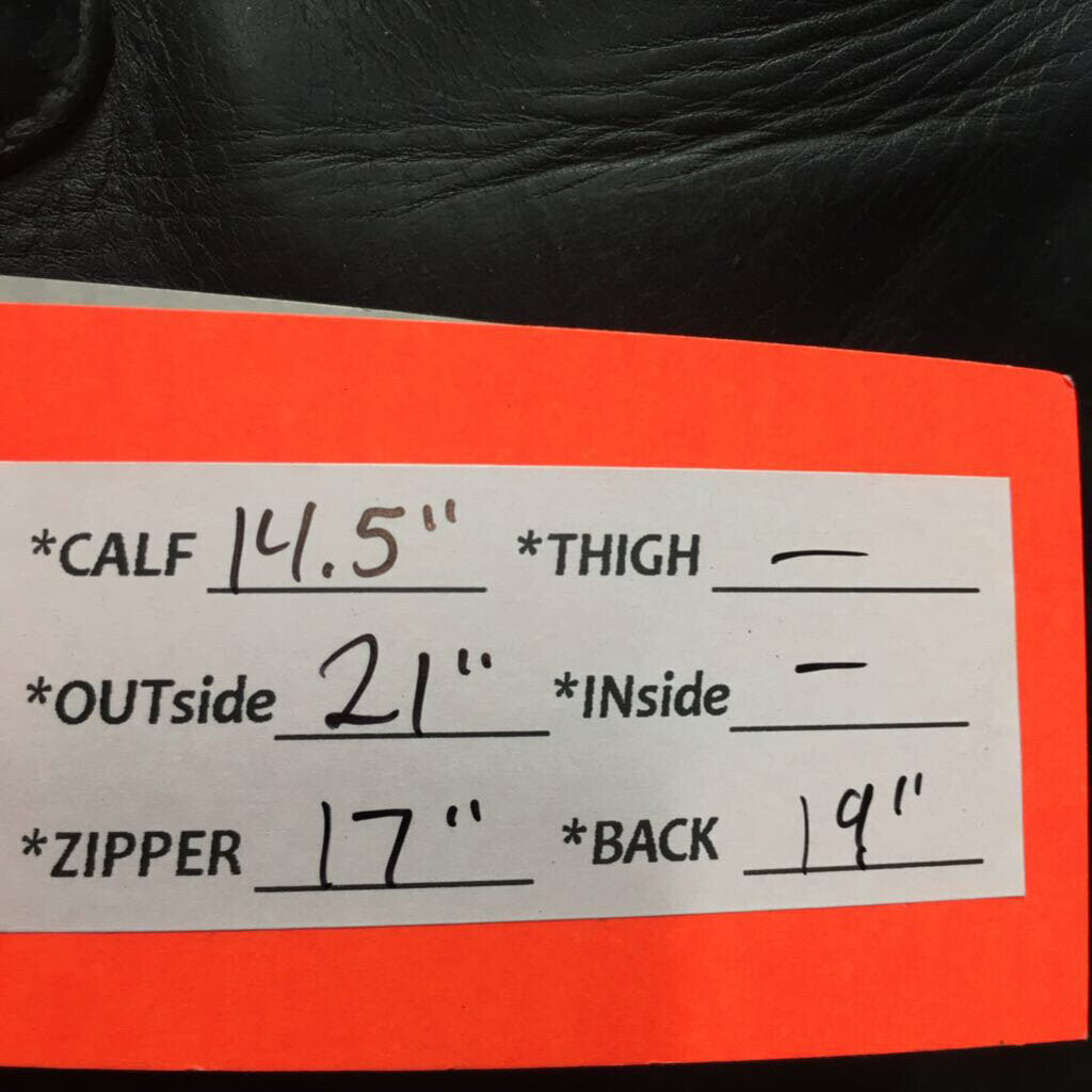 Calf 14.5", Outside 21", Zipper 17", Back 19"