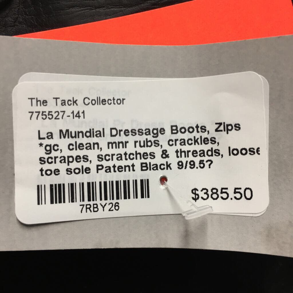 Dressage Boots, Zips *gc, clean, mnr rubs, crackles, scrapes, scratches & threads, loose toe sole
