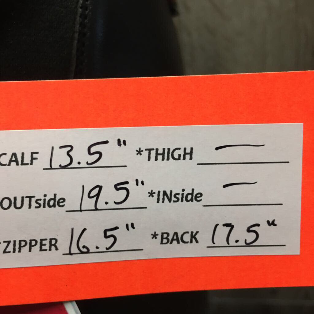 Calf 13.5", Outside 19.5", Zipper 16.5", Back 17.5"
