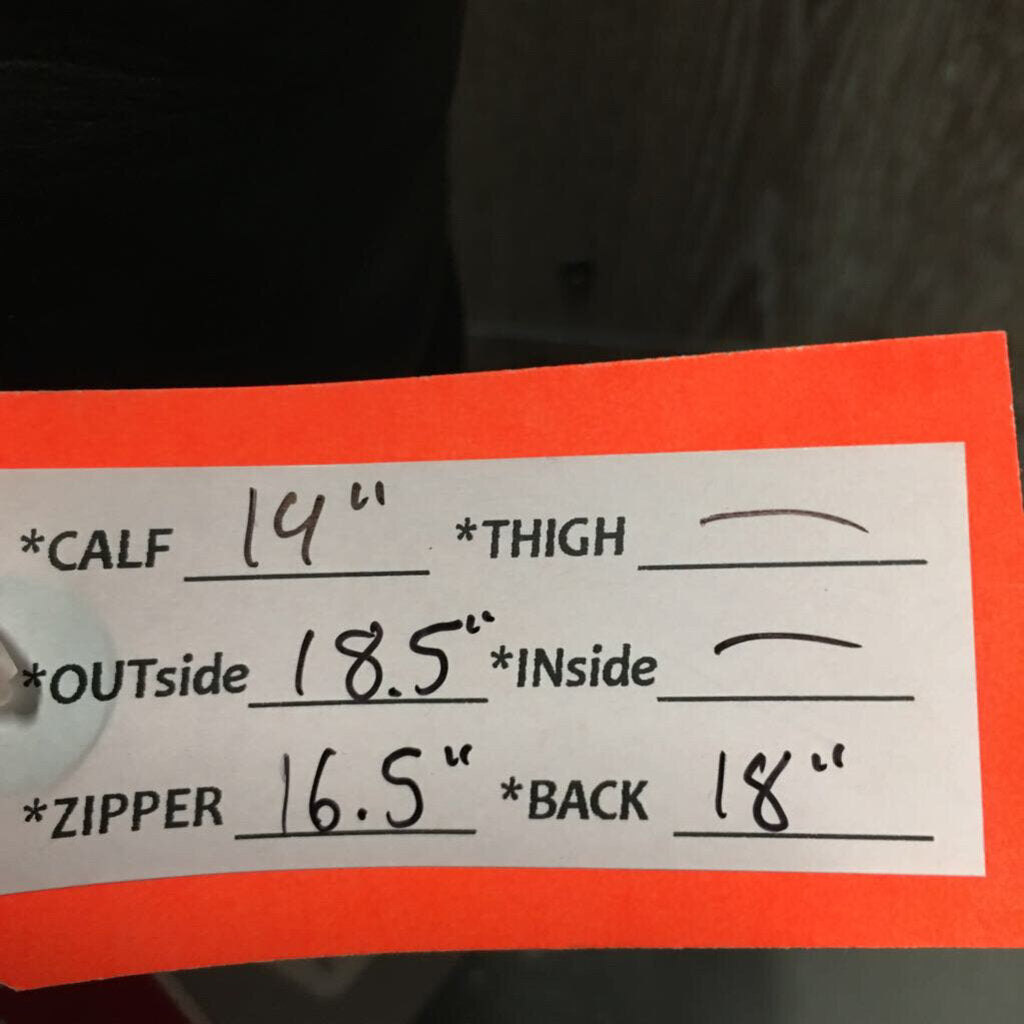 Calf 14", Outside 18.5", Zipper 16.5", Back 18"