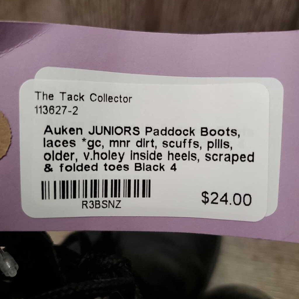 JUNIORS Paddock Boots, laces *gc, mnr dirt, scuffs, pills, older, v.holey inside heels, scraped & folded toes