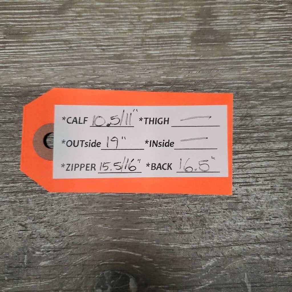 Calf: 10.5/11", Outside: 19", Zipper: 15.5/16", Back: 17.5"