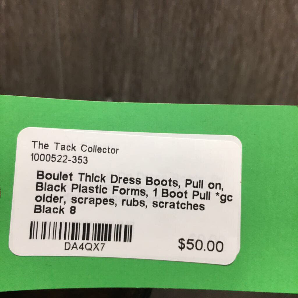 Thick Dress Boots, Pull on, Black Plastic Forms, 1 Boot Pull *gc, older, scrapes, rubs, scratches
