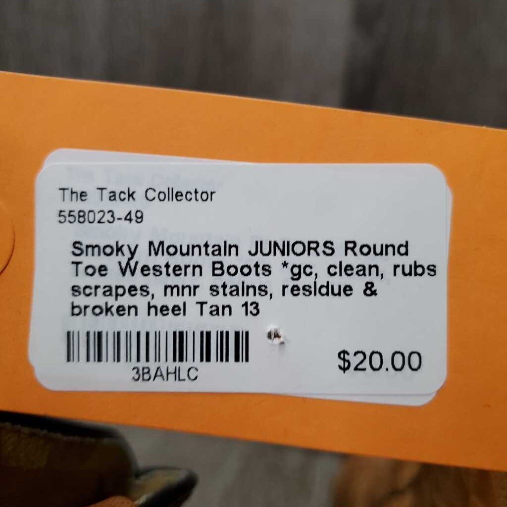 JUNIORS Round Toe Western Boots *gc, clean, rubs, scrapes, mnr stains, residue & broken heel