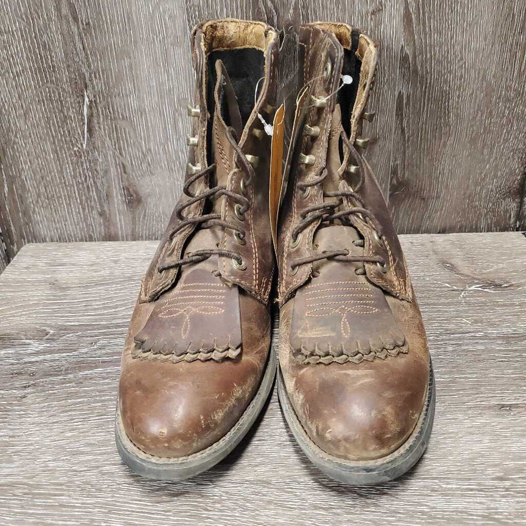 Pr Roper Boots, lace up, fringe *gc, mnr dirt, scuffed, scratches, dry, thread on sole