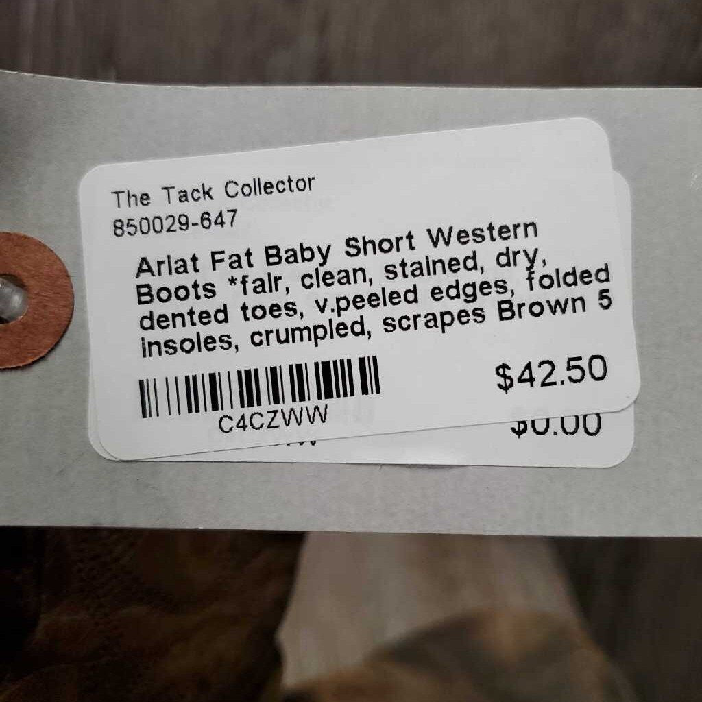 Short Western Boots *fair, clean, stained, dry, dented toes, v.peeled edges, folded insoles, crumpled, scrapes