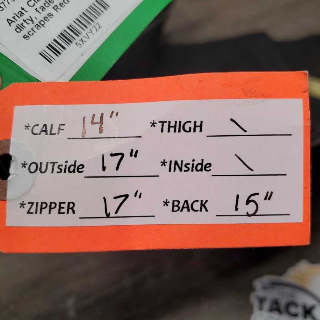 Calf: 14" Outside: 17" Zipper: 17" Back: 15"