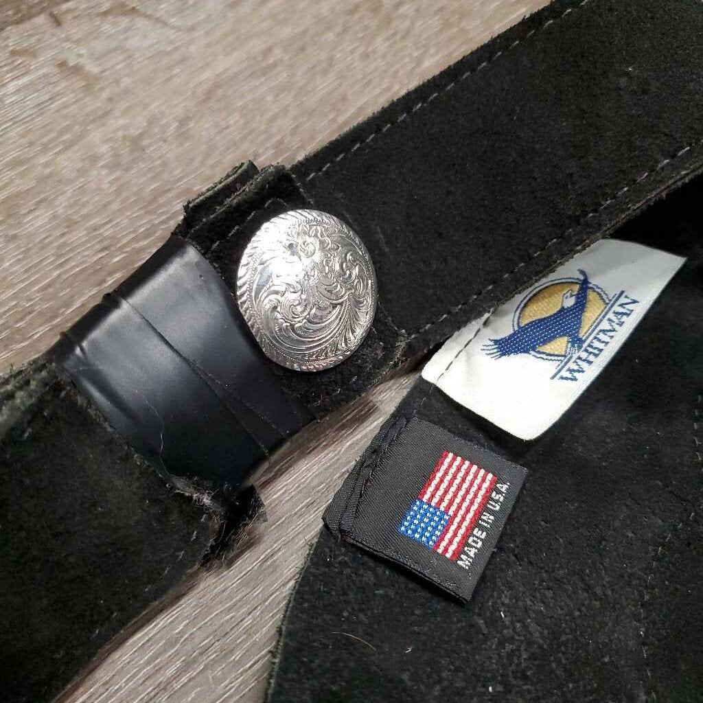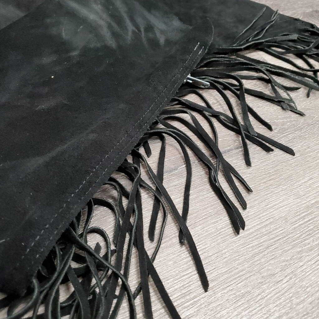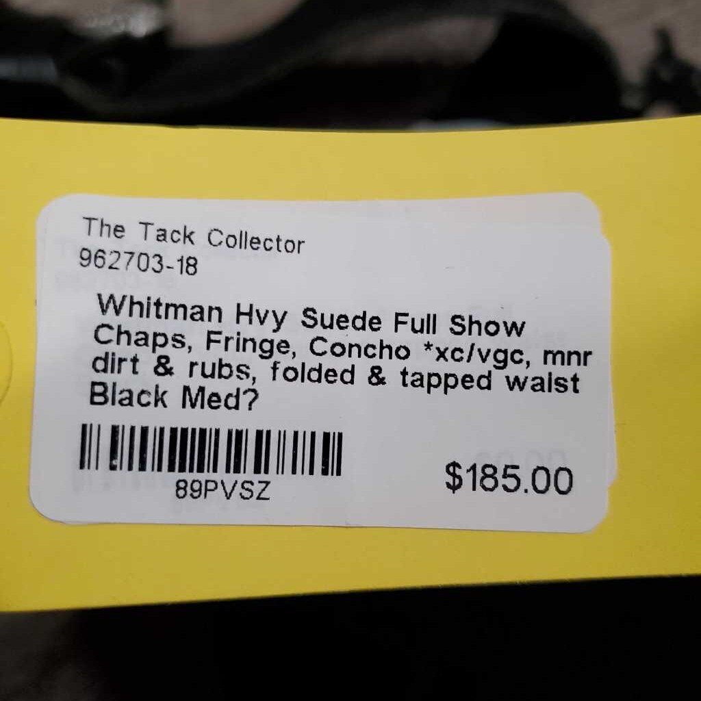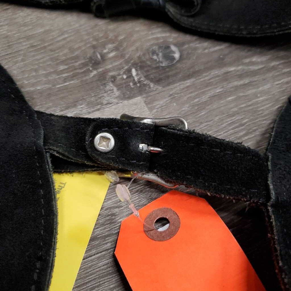 Hvy Suede Full Show Chaps, Fringe, Concho *xc/vgc, mnr dirt & rubs, folded & tapped waist