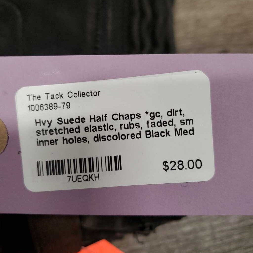 Hvy Suede Half Chaps *gc, dirt, stretched elastic, rubs, faded, sm inner holes, discolored