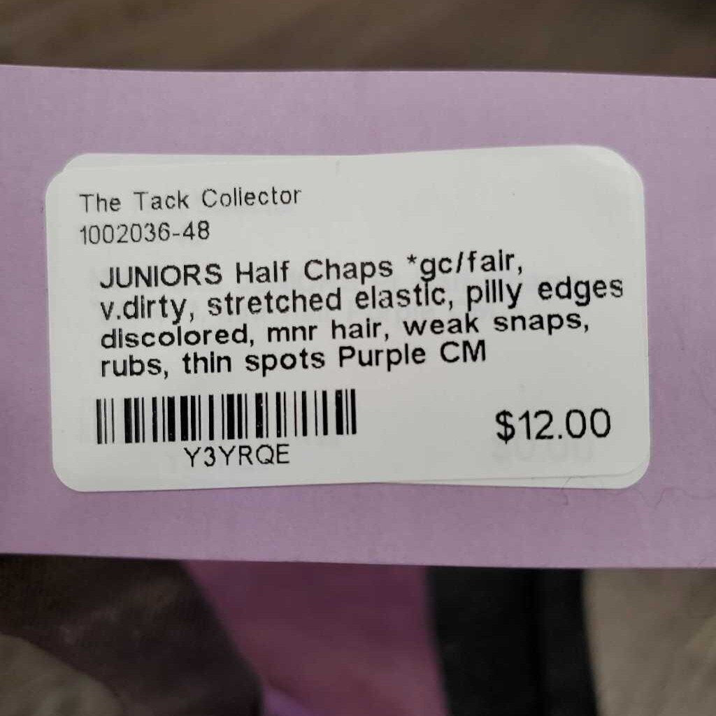 JUNIORS Half Chaps *gc/fair, v.dirty, stretched elastic, pilly edges, discolored, mnr hair, weak snaps, rubs, thin spots