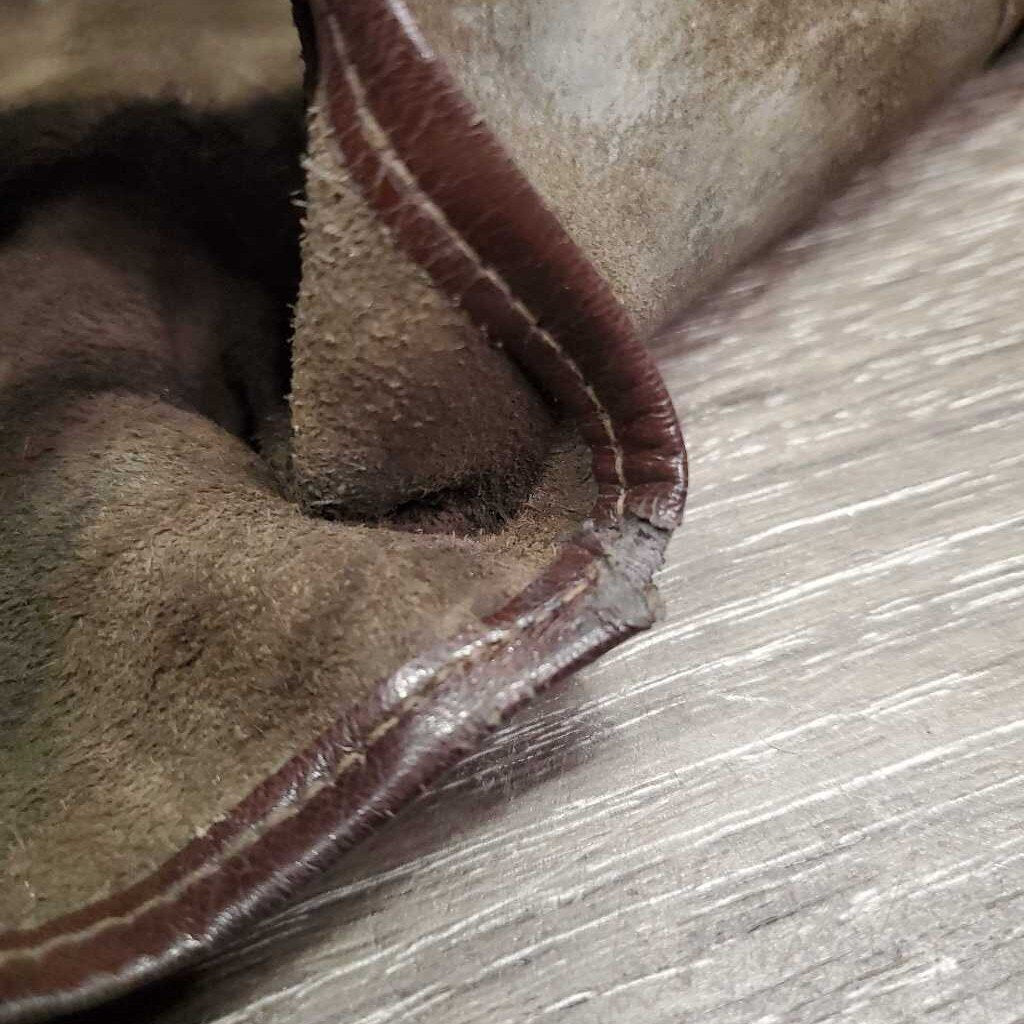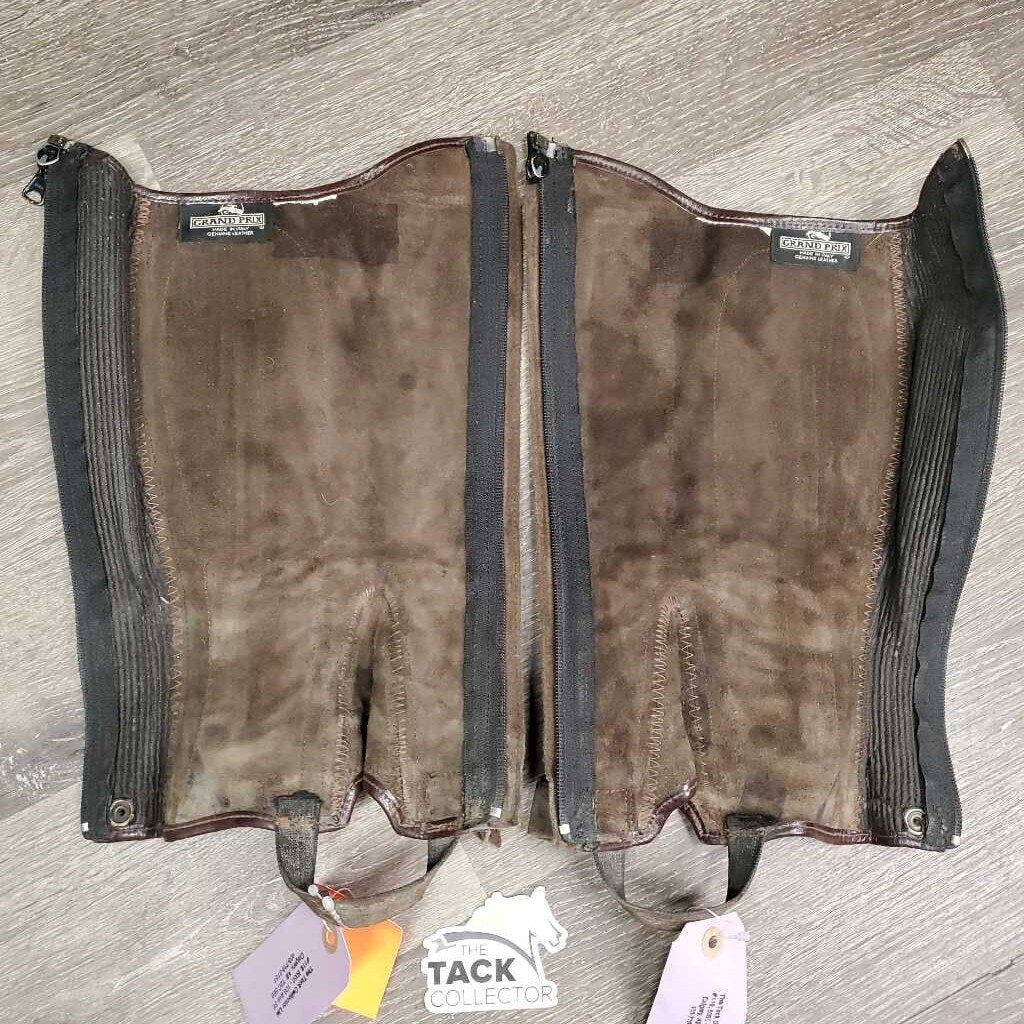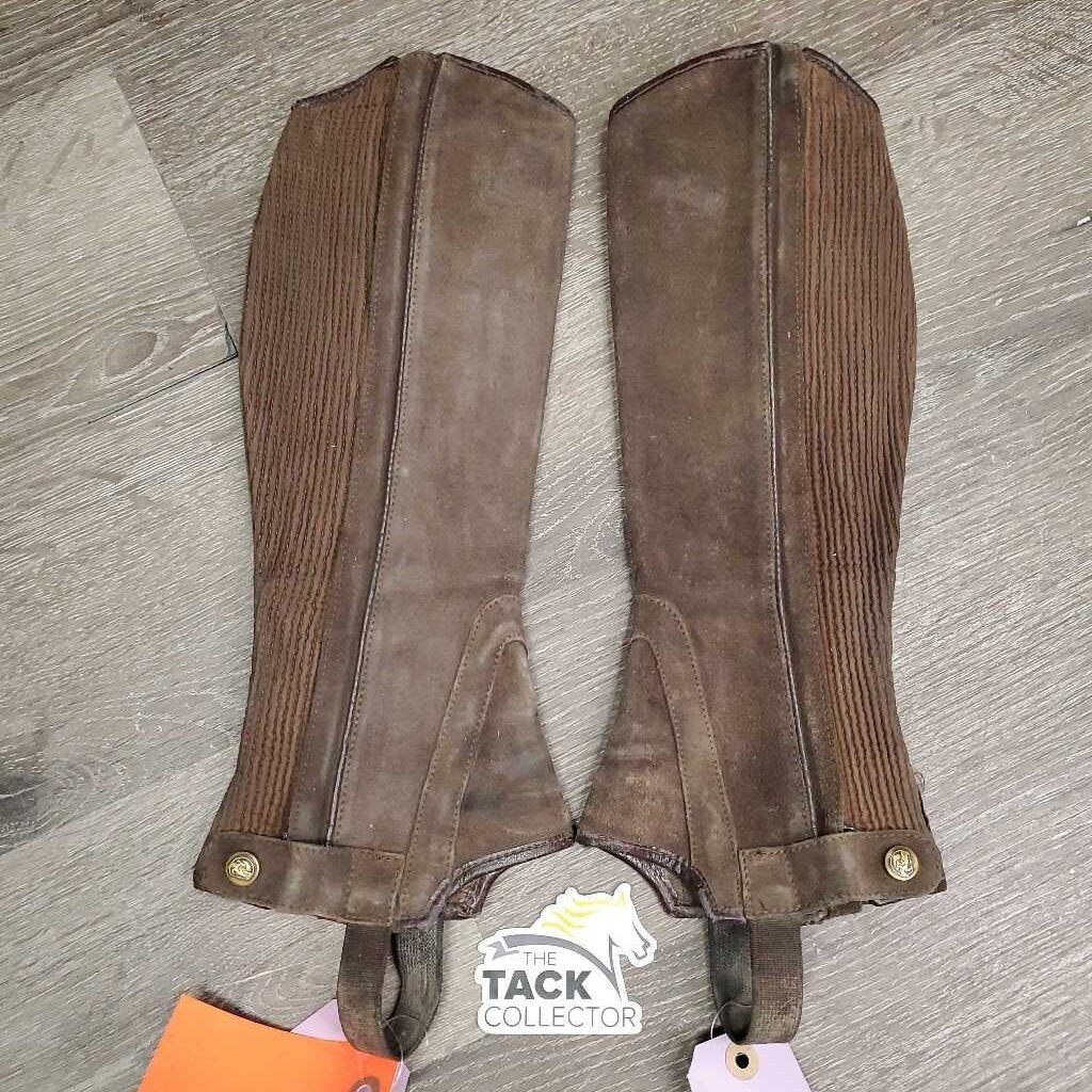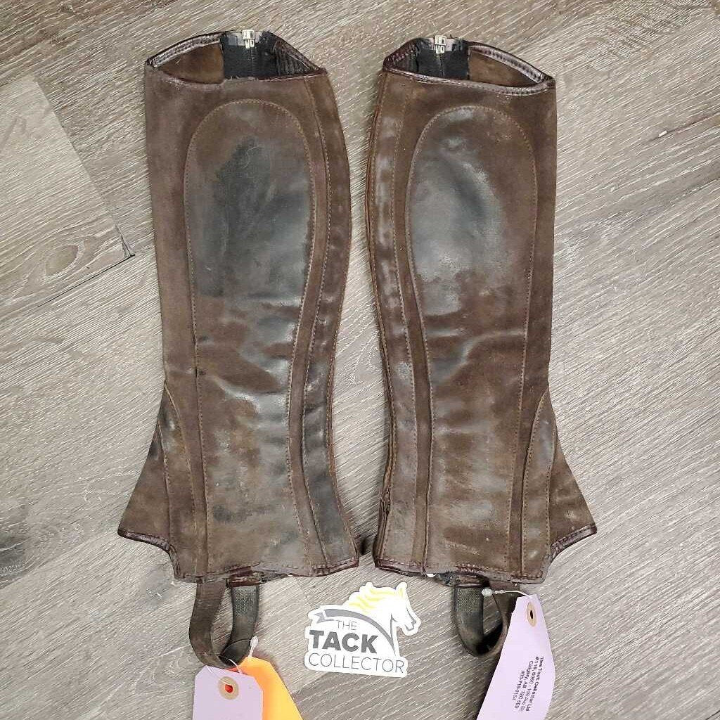 JUNIORS Suede Half Chaps *gc/fair, rubs, older, faded, dirty, rubs, torn edge, unstitched