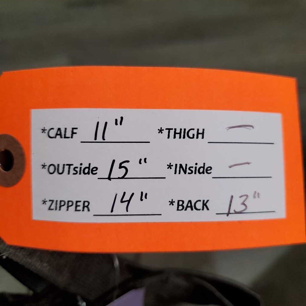 Calf 11", Outside 15", Zipper 14", Back 13"