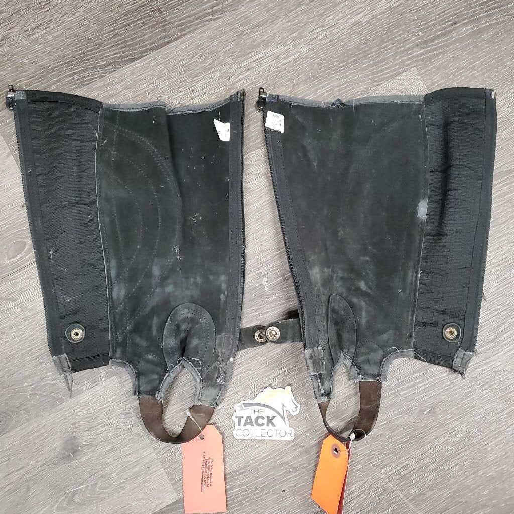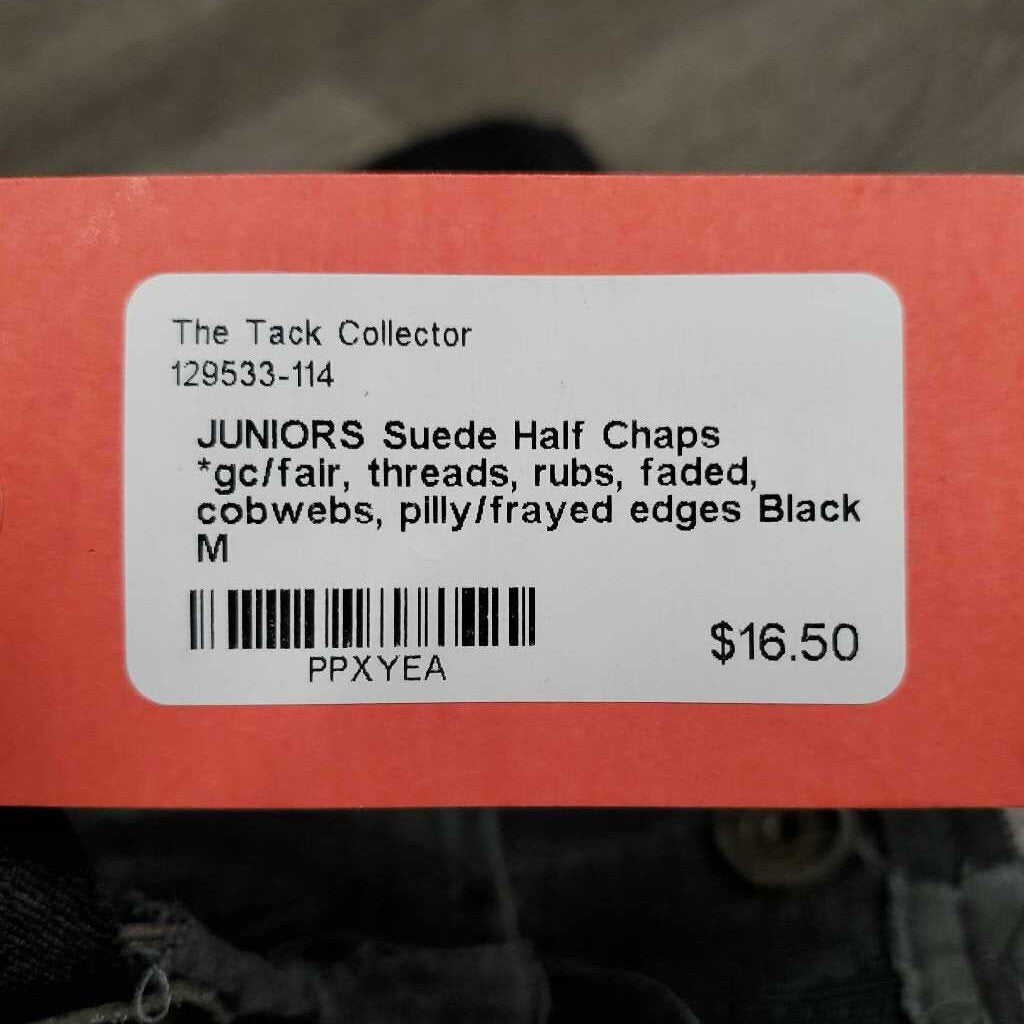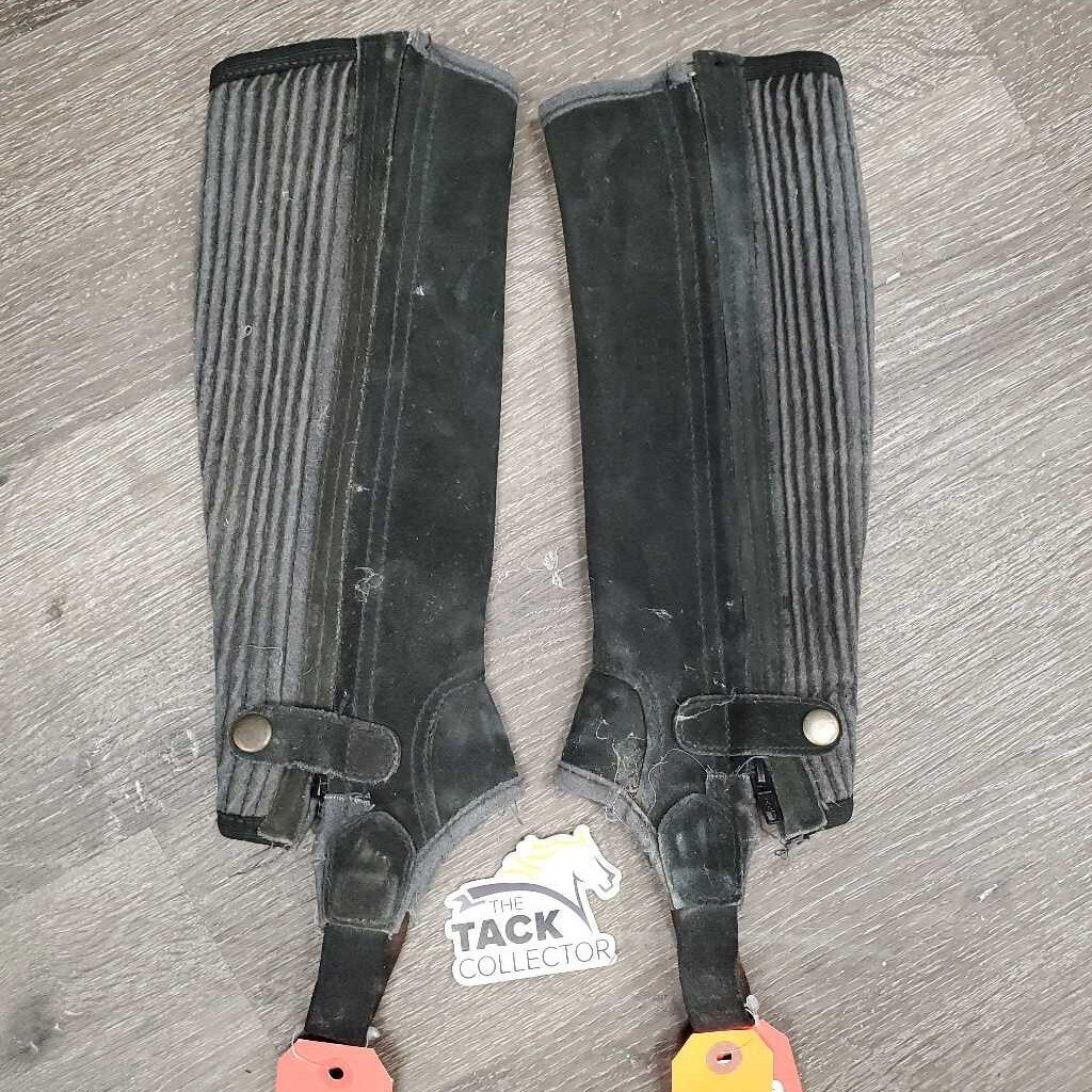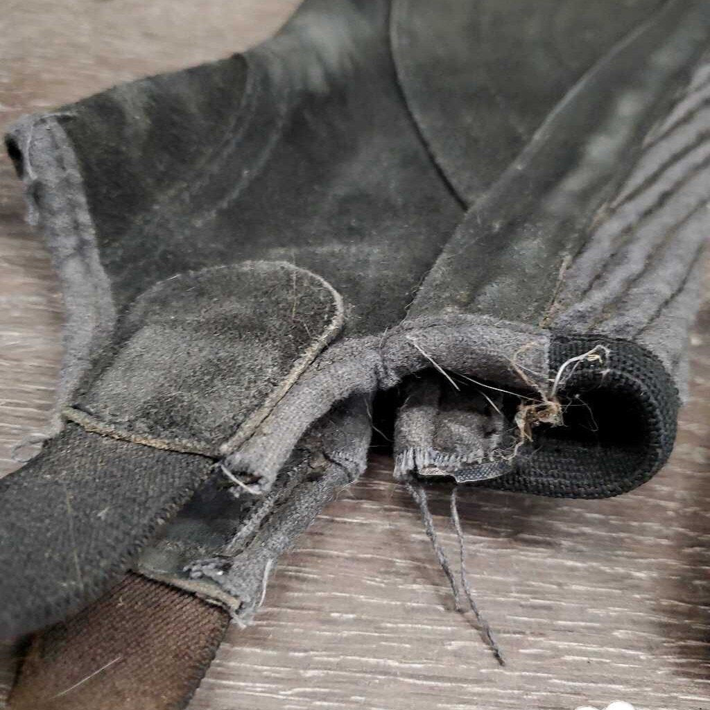 JUNIORS Suede Half Chaps *gc/fair, threads, rubs, faded, cobwebs, pilly/frayed edges