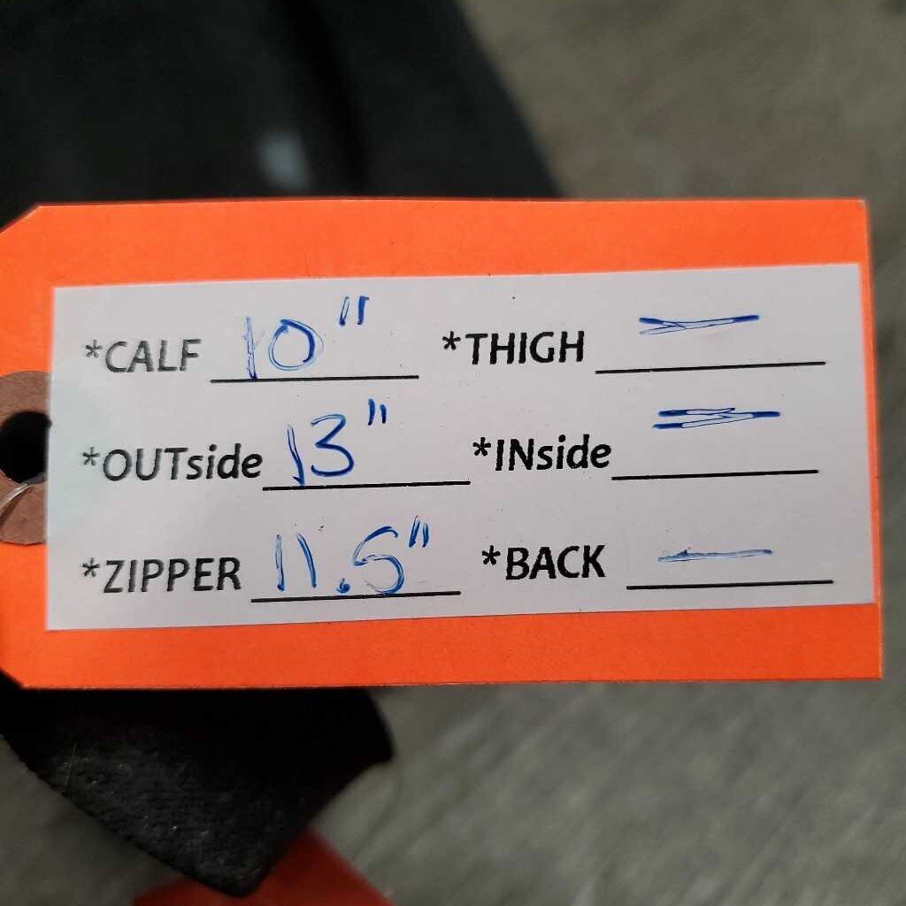 Calf: 10", Outside: 13", Zipper: 11.5"