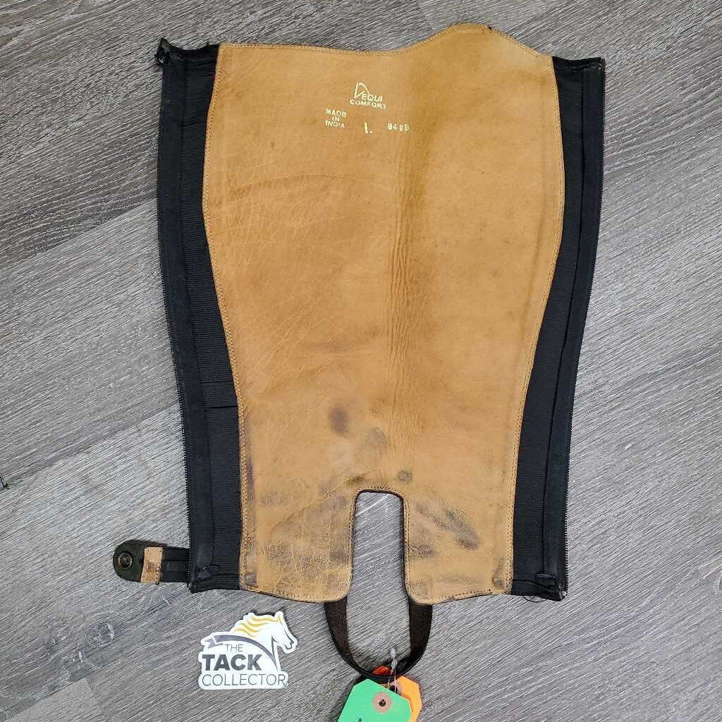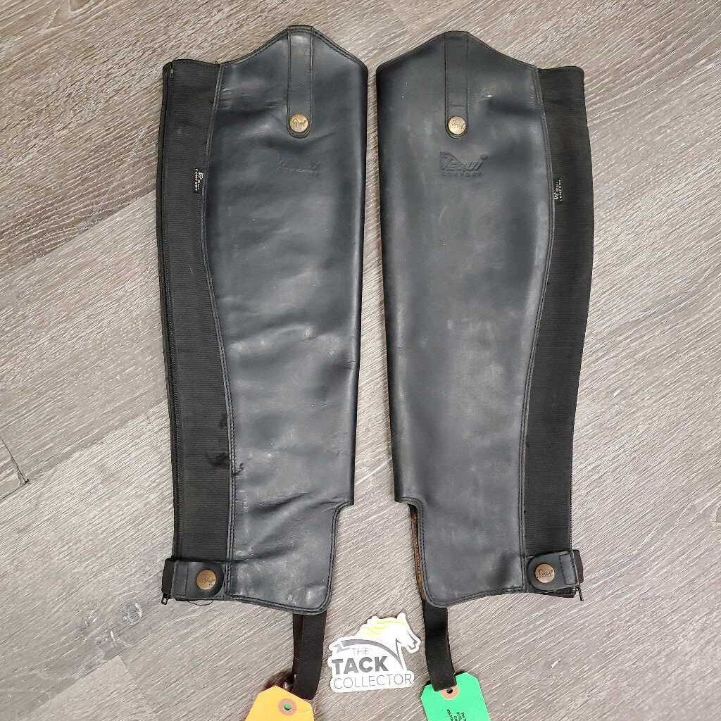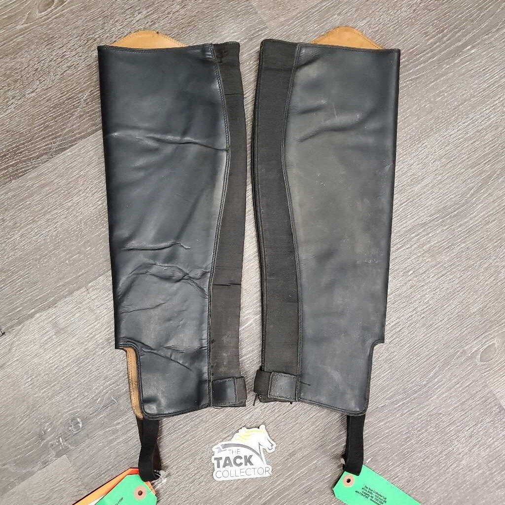 Leather Half Chaps, Back Zipper *gc, mnr dirt, creases & folds, elastic: threads & snags, faded