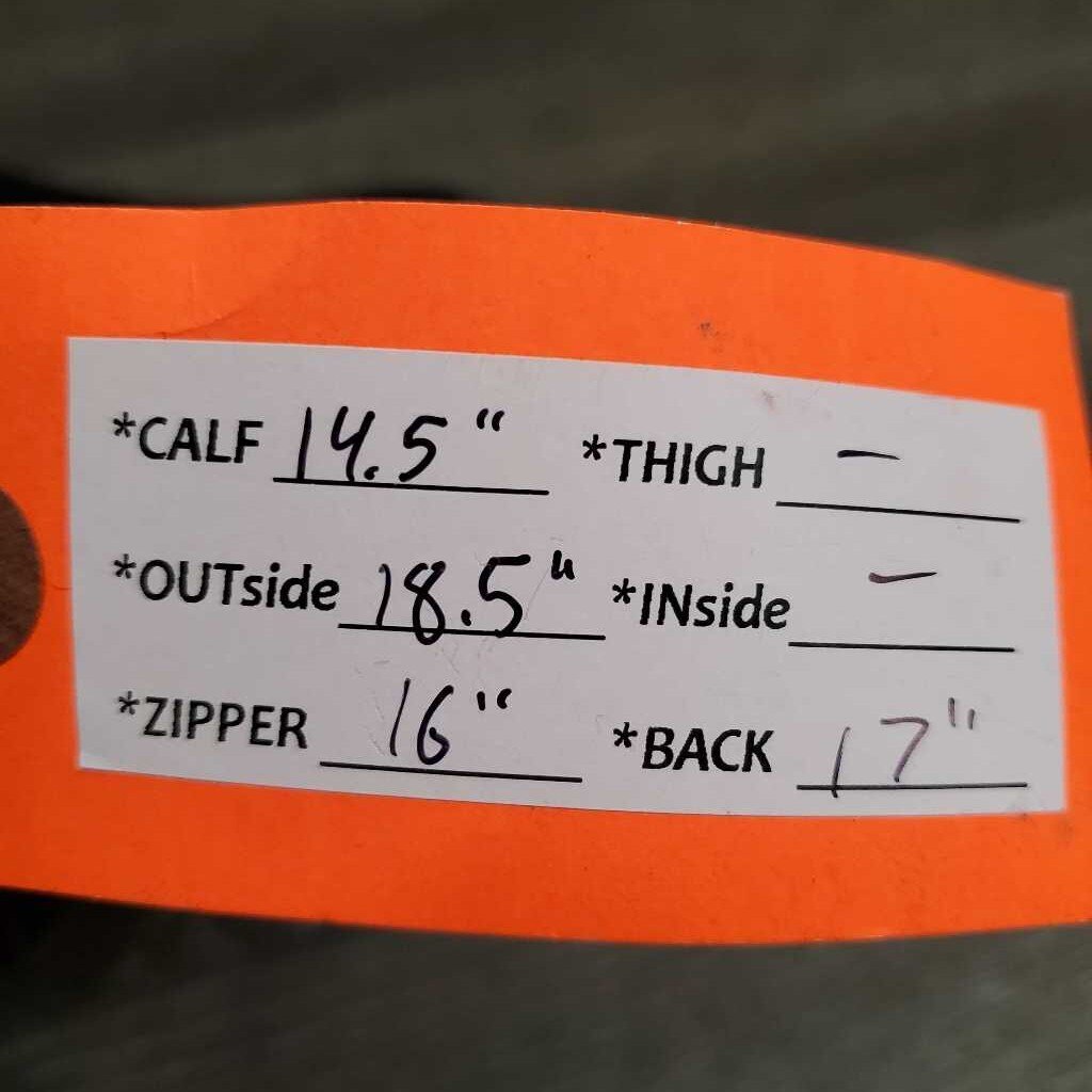 Calf 14.5", Outside 18.5", Zipper 16", Back 17"
