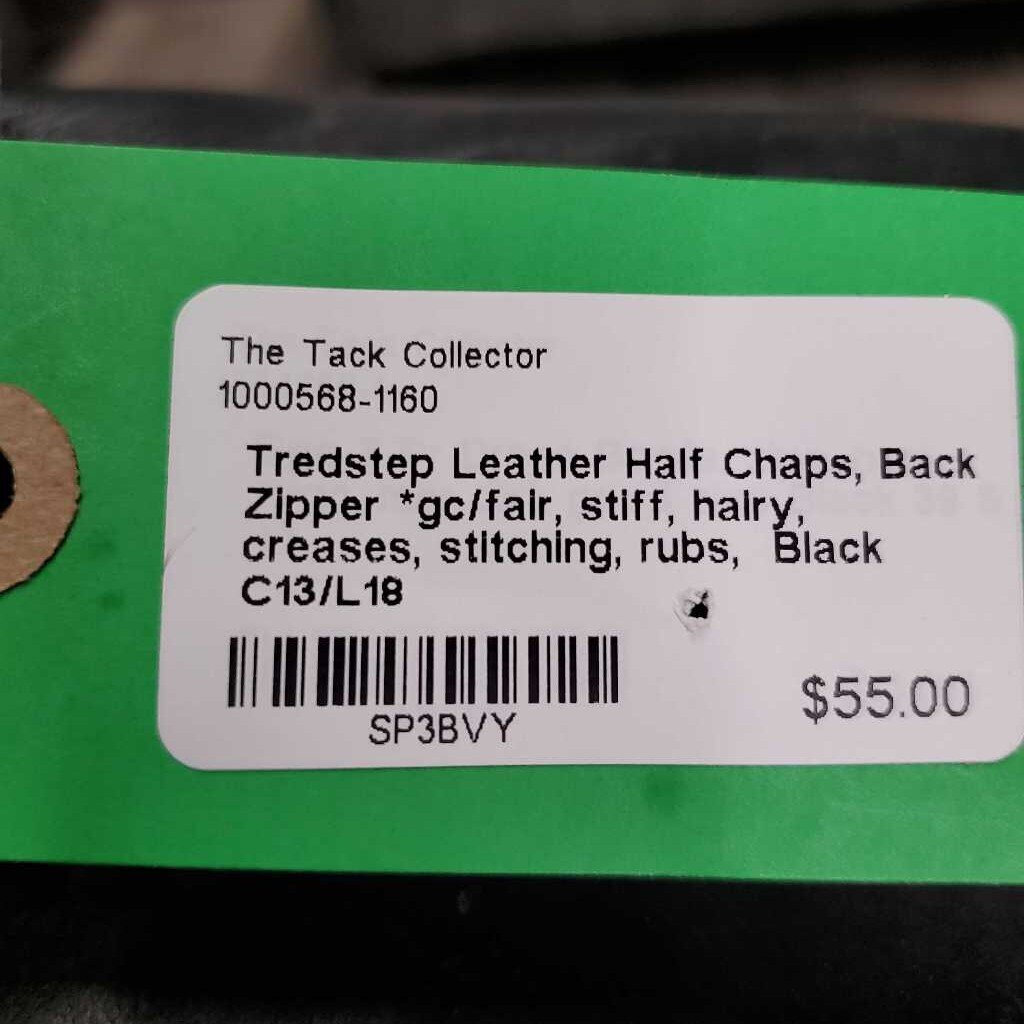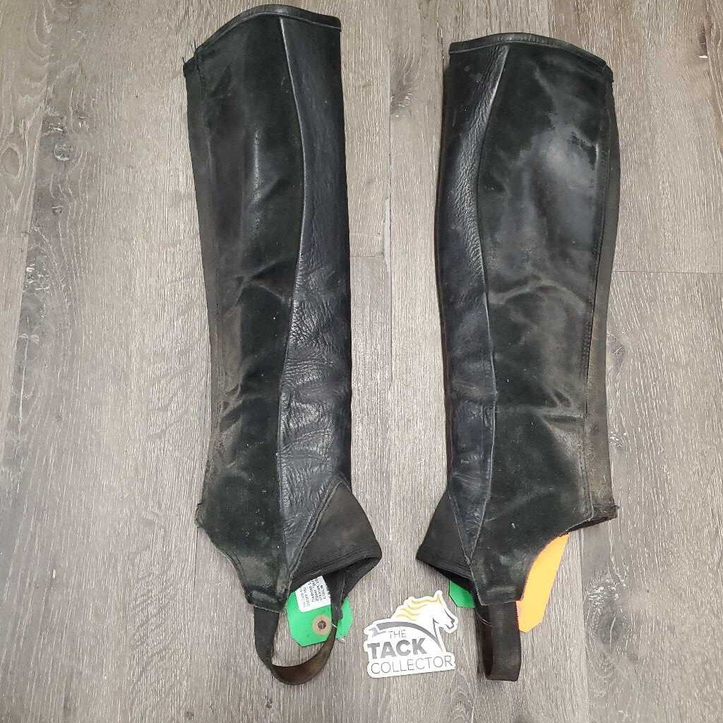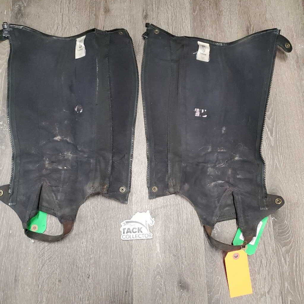 Leather Half Chaps, Back Zipper *gc/fair, stiff, hairy, creases, stitching, rubs