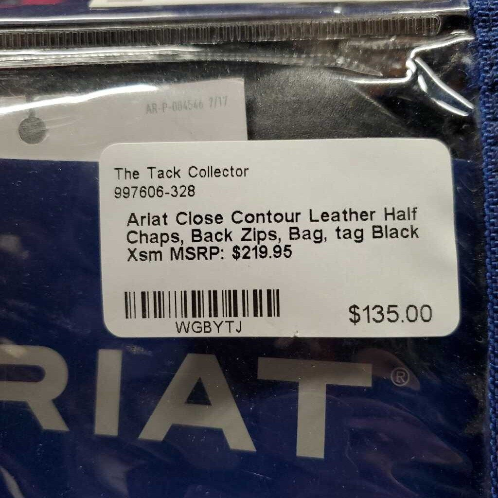 Leather Half Chaps, Back Zips, Bag, tag