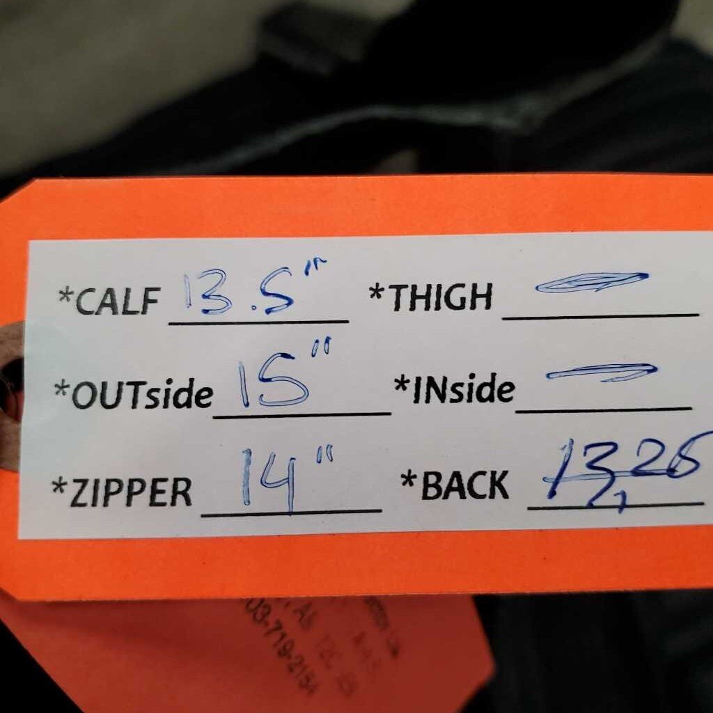 Calf: 13.5", Outside: 15", Zipper: 14" Back: 13.25"