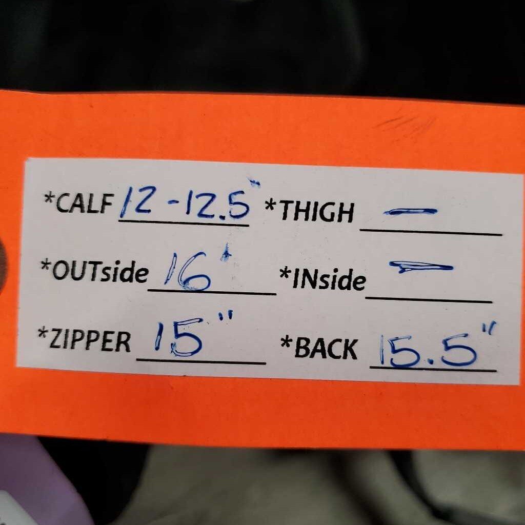 Calf: 12-12.5", Outside: 16", Zipper: 15", Back: 15.5"