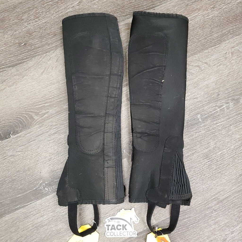 Neoprene Half Chaps *gc/fair, cracks, rubs, clean, undone stitching, hair