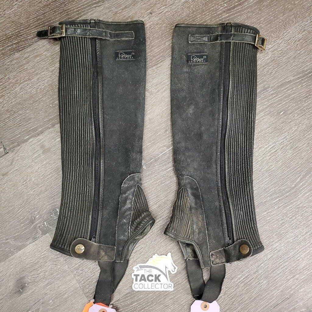 Pr Hvy Suede Half Chaps, Top Strap/Buckle *fair/gc, v.faded, rubs, older, scrapes, stains, stretched elastic