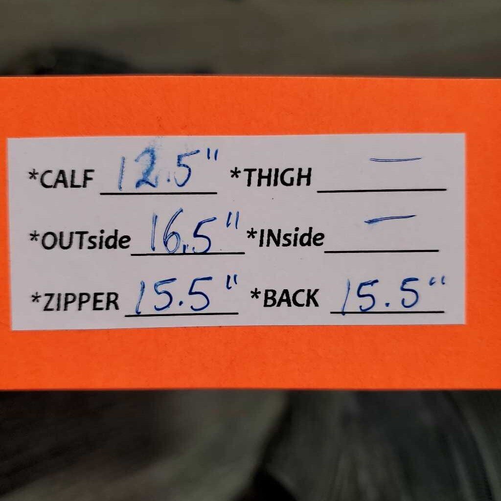 Calf 12.5", Outside 16.5", Zipper 15.5", Back 15.5"