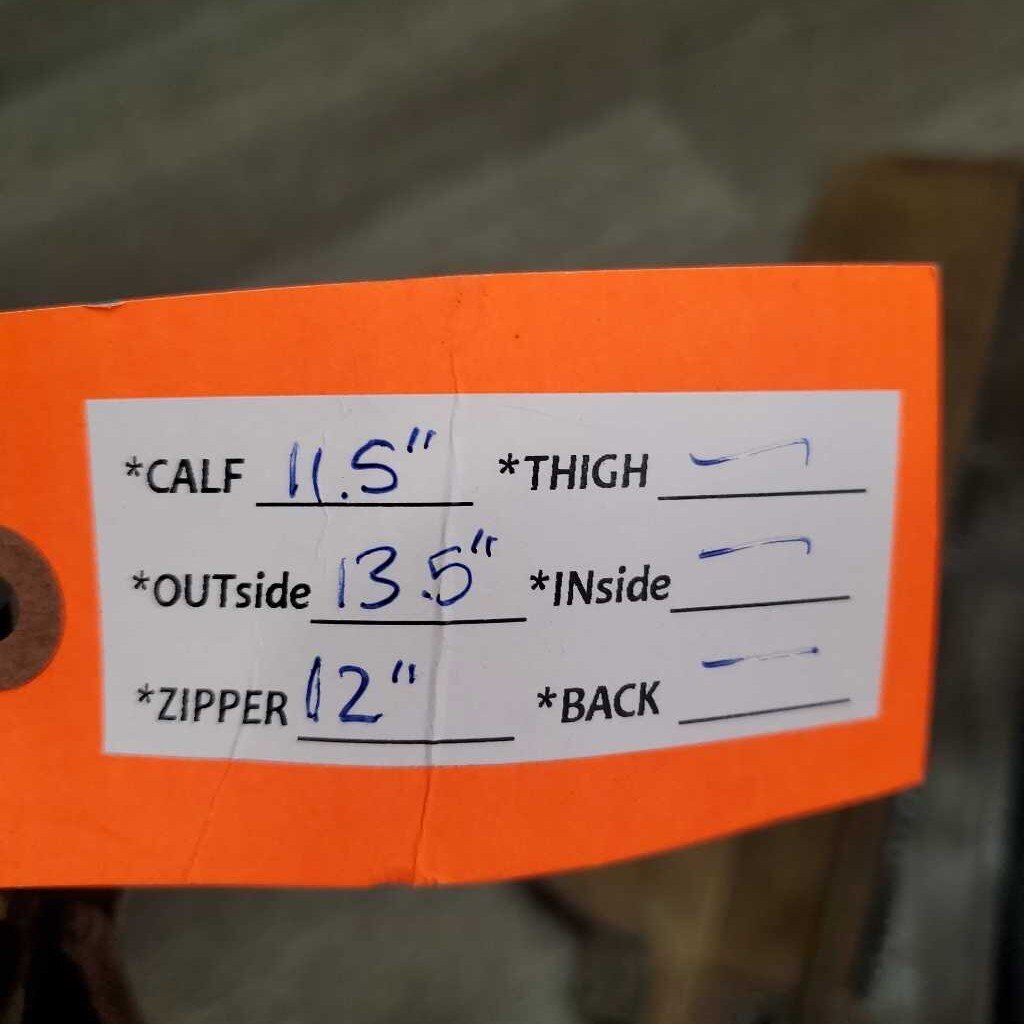 Calf: 11.5", Outside: 13.5", Zipper: 12"