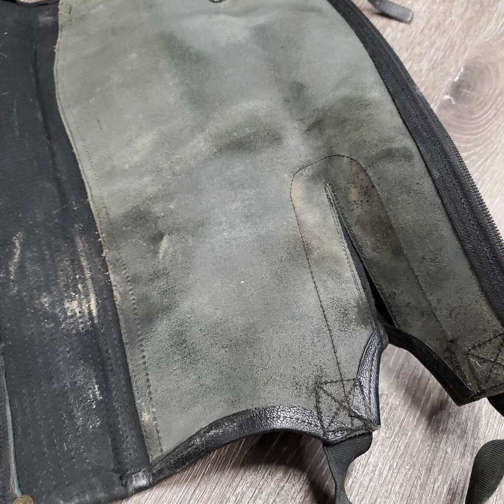 Pr Leather Half Chaps, buckle top *vgc, dirty, rubs, stains, older, v.stiff, creases, stretched elastics