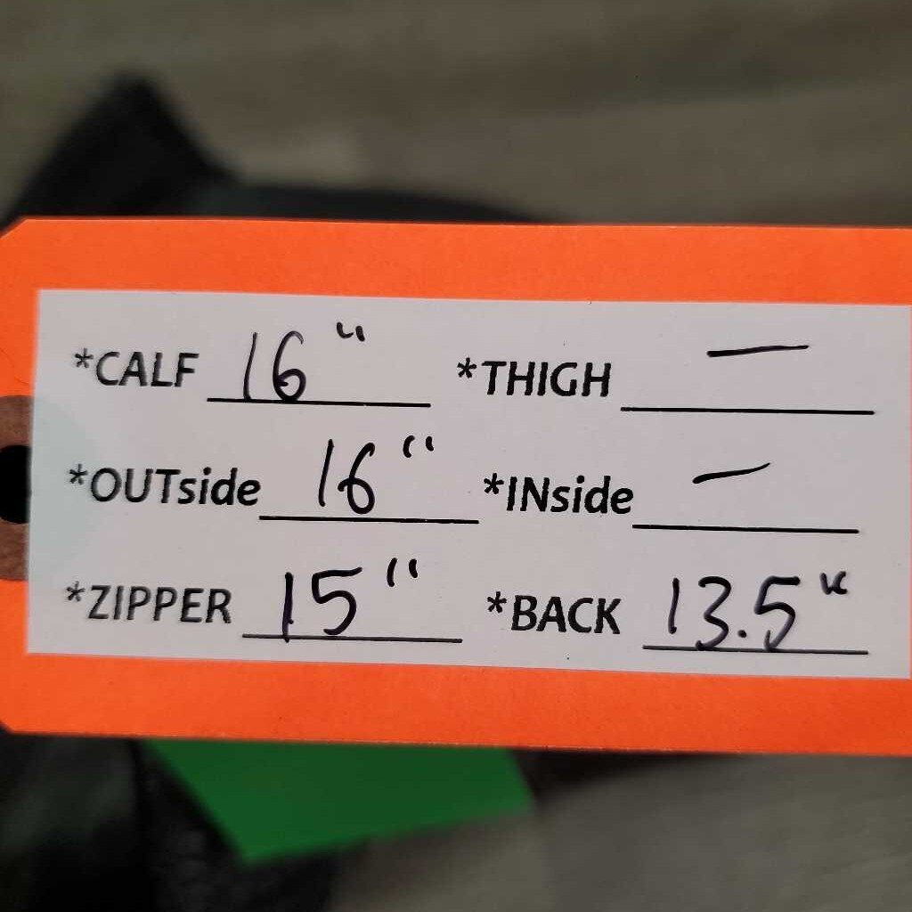 Calf 16", Outside 16", Zipper 15", Back 13.5"