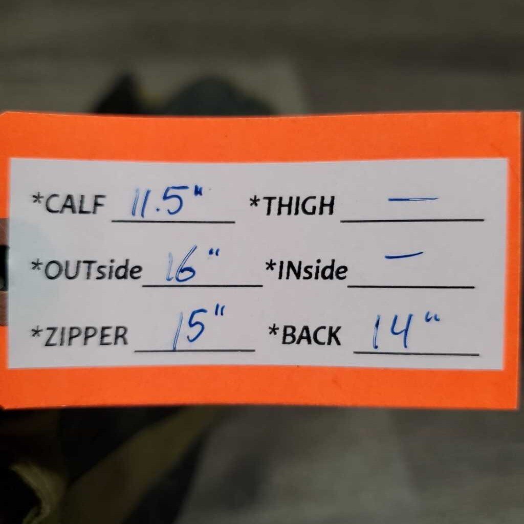 Calf 11.5", Outside 16", Zipper 15", Back 14"