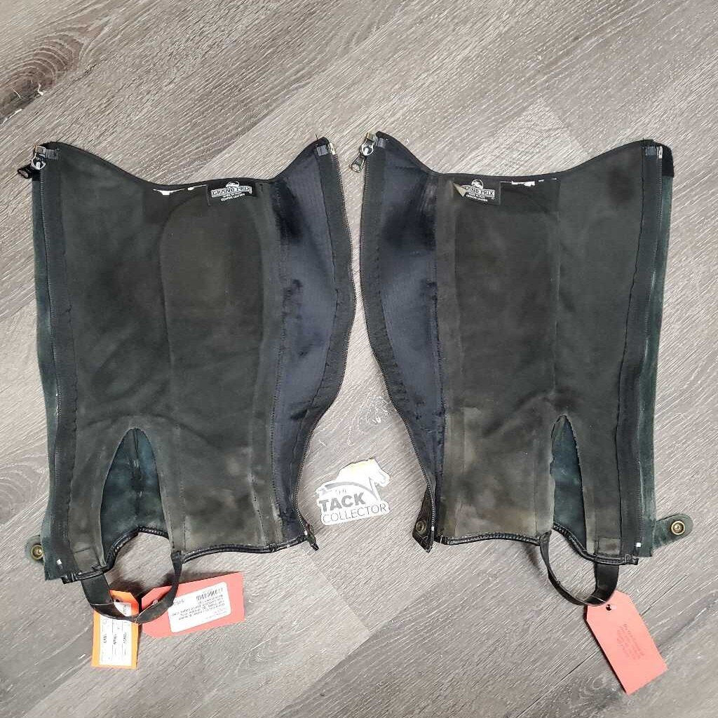 Pr Leather & Suede Half Chaps *gc, threads, dirty, rubs/stretched, peeled edges, older