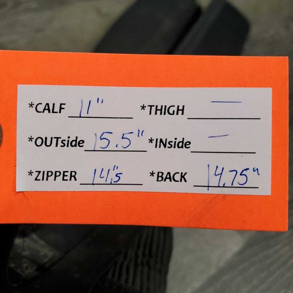 Calf 11", Outside 15.5", Zipper 14.5", Back 14.75"